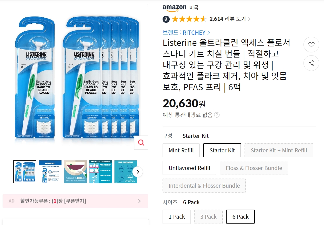 한동안 검색해서 잘 쓰던 제품인데 어느 순간 가격이 확 올랐습니다. 사실 미국에서 5불 안쪽으로 살 수 있는 제품이라 검색을 해보았더니 11번가 아마존 직구에서 저렴하게 판매 중이었습니다. 대신 6개를 한꺼번에 사야 하는 번거로움이 있지만, 아이들도 이 제품을 사용하면 쉽게 치아 사이의 이물질을 제거할 수 있습니다. 저희는 가족 모두가 이 제품을 쓰고 있습니다.