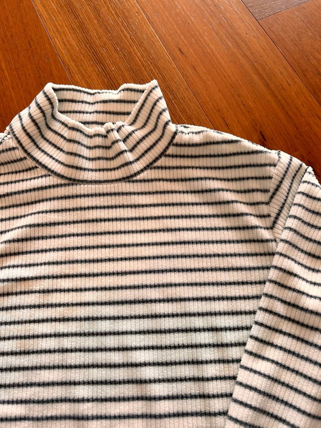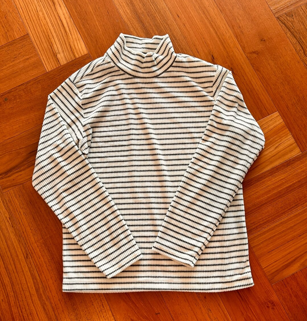 아이들이 입는 후리스 하이넥은 골덴소재같은 재질이며, 하이넥 보더 또한 부들부들한 재질로 보온성이 뛰어납니다.