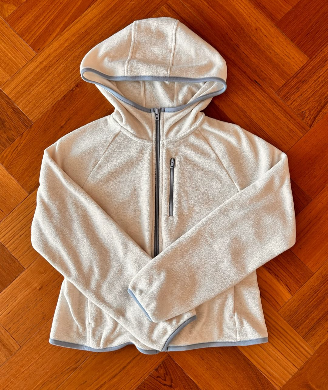 그다음으로 고른 제품은 라이트후리스풀집후디(29,900원)입니다. 사실 이건 어른용 제품이지만, 초등학교 3학년 생치고는 덩치가 다소 있는 저희 아이에겐 S 사이즈가 잘 맞았습니다. 재질도 제가 원하는 털 빠짐없고 따뜻한 소재라 마음에 들었습니다.