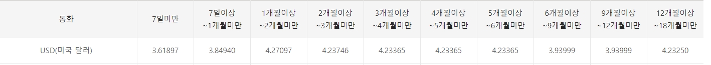 참고로 현재 외화 정기예금 금리는 다음과 같습니다. (2023년 3월 18일 기준)