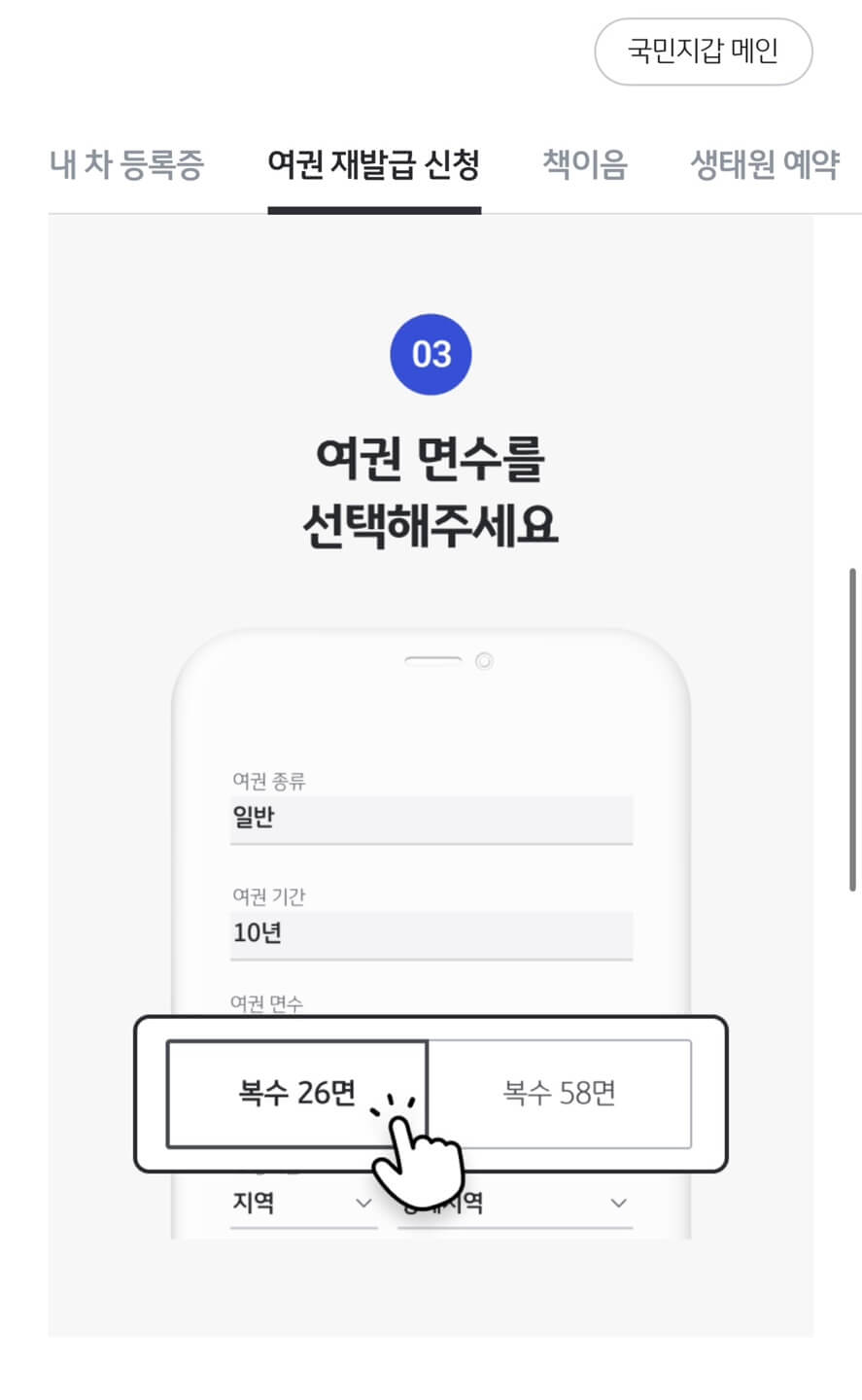 여권면수를 선택한 후, 수령기관을 선택합니다.