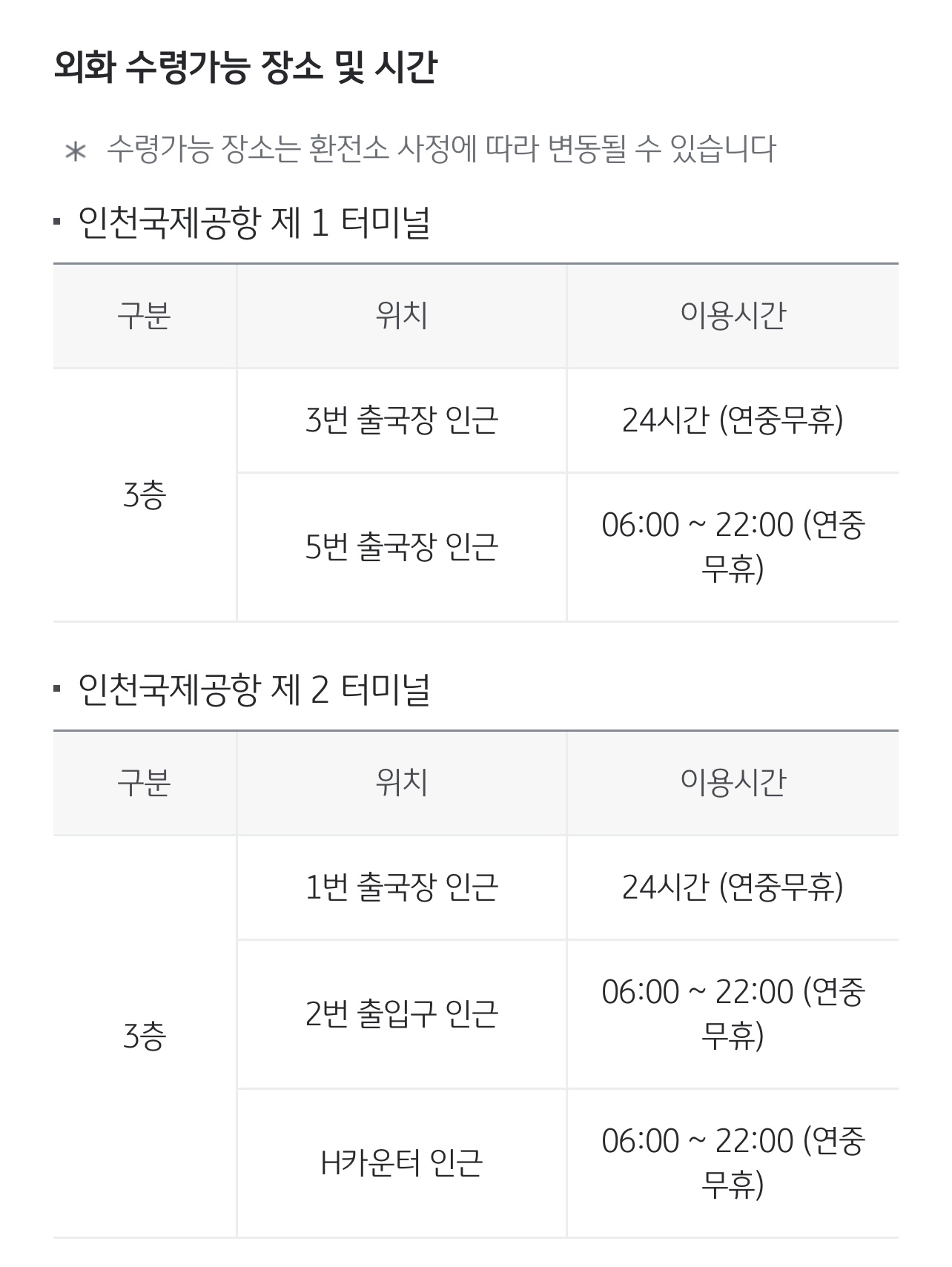외화 동전 환전이 가능한 은행 지점들이 있습니다. 권종과 종류는 지점을 방문하기 전에 미리 유선으로 확인하시기 바랍니다.아래를 클릭하면 확인하실 수 있습니다.