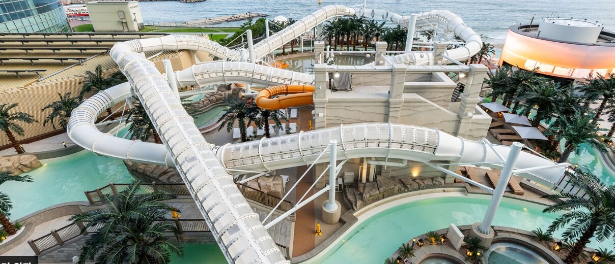 클럽디오아시스에는 한 여름 해운대를 바라보며 야외에서 수영을 즐길 수 있는 유수풀과 워터 슬라이드 그리고 바다를 조망하면서 음식을 즐길 수 있는 라운지가 갖춰져 있습니다. 생각만 해도 얼마나 멋진 곳일까 가슴이 설렙니다.