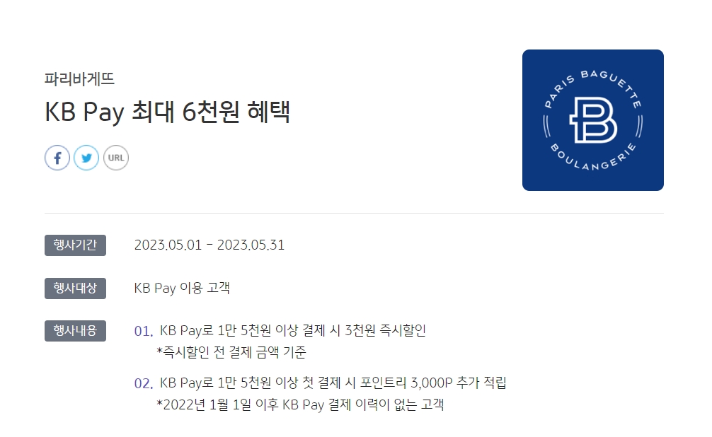■이벤트 내용: ①파리바게트에서 KB Pay로 1만 5천 원 이상 결제하면 3천 원 즉시할인