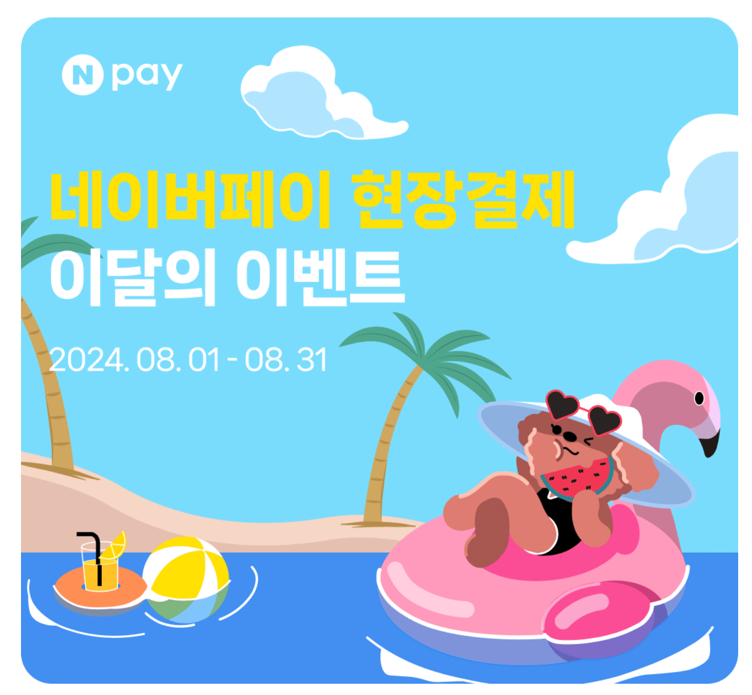 8월 네이버페이 이벤트로 시원하고 즐거운 여름 보내시기 바라겠습니다. 감사합니다.
