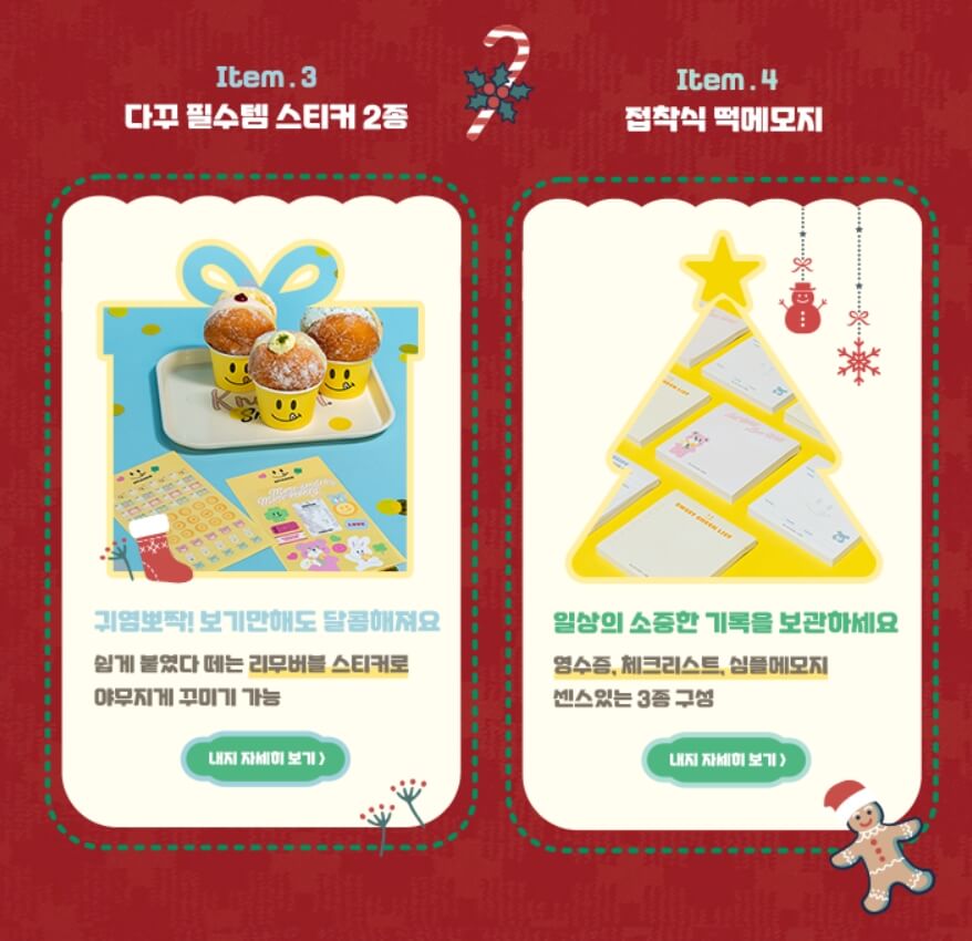 금고로도 활용이 가능한 틴케이스는 기본으로 줘지며, 다이어리는 알찬 구성으로 쓰기 편하게 되어 있답니다. 또한 다이어리를 손쉽게 꾸밀 수 있도록 스티커와 메모지가 제공된다는 사실!