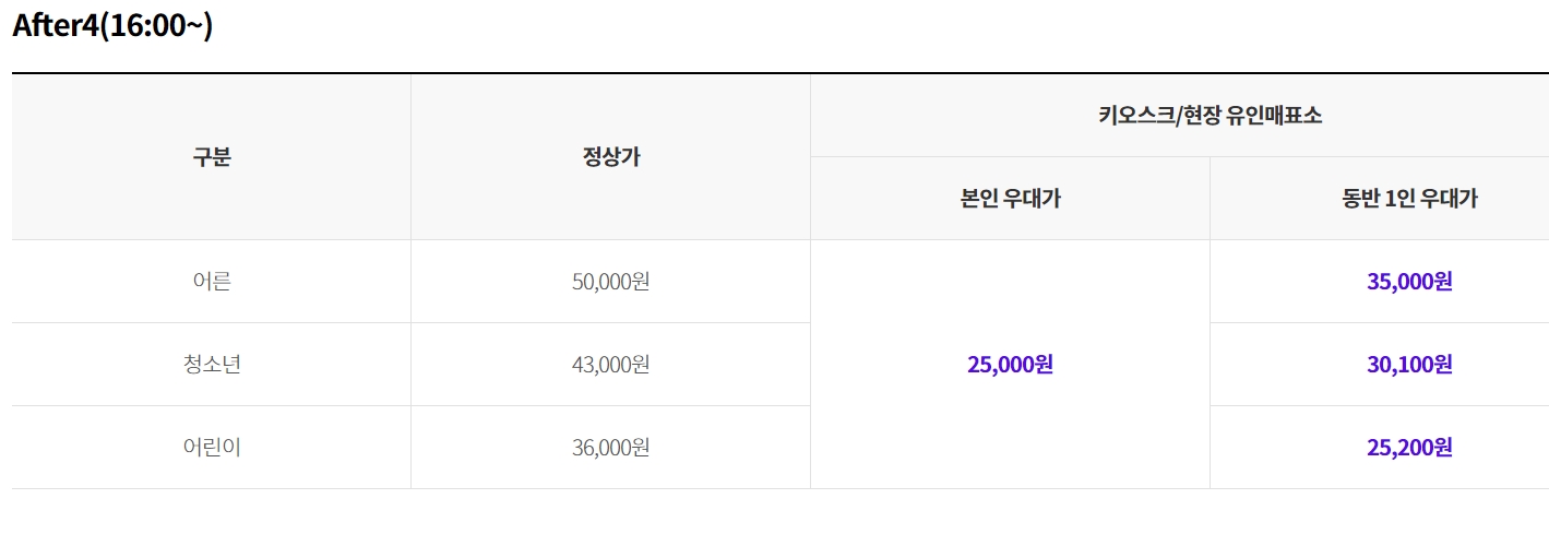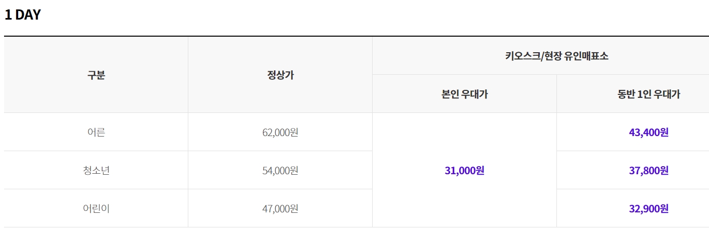 ▶이용방법: 현장 유인 매표소 또는 티켓 키오스크에서 KT 멤버십 회원 인증 (할인 금액만큼 KT 멤버십 포인트 차감)