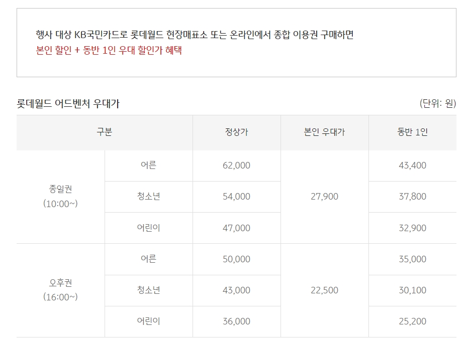 ●국민카드 자유이용권 55%할인 (6월1일~6월30일까지/ 현장&홈페이지)