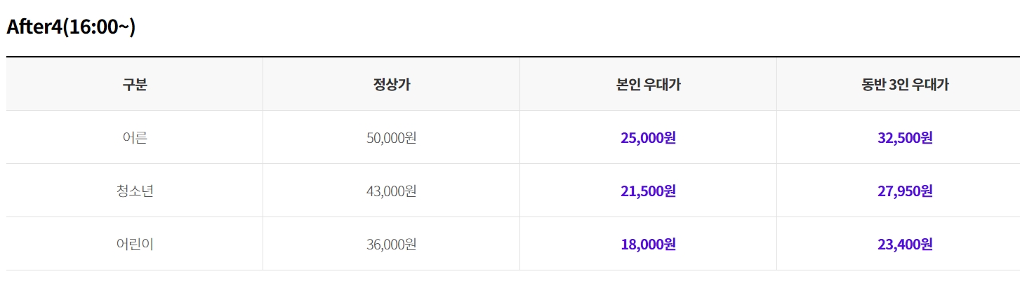 KT 멤버십 등급에 따라 동반인 3명까지 할인이 가능합니다. (VIP 등급 : 35%, 기타 등급 30%)