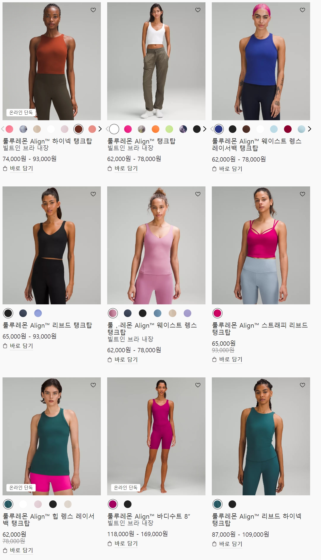 룰루레몬을 대표하는 상품이라고 해도 과언이 아닐 정도로 룰루레몬의 레깅스는 고품질의 퀄리티를 자랑합니다. 한번 입어보면, 매료되어 버린다는 룰루레몬 레깅스는 이번 썸머 세일에서 2~6만 원가량 세일 중입니다. 조금 과감한 색상일수록 세일폭이 크다는 사실 잊지 마세요! 그리고 온라인에서 구매하실 경우, 무료배송, 무료반품이기 때문에 사이즈 고민은 안 하셔도 됩니다. 근처 매장에서 바꾸실 수도 있고, 온라인에서 교환받을 수 있습니다.