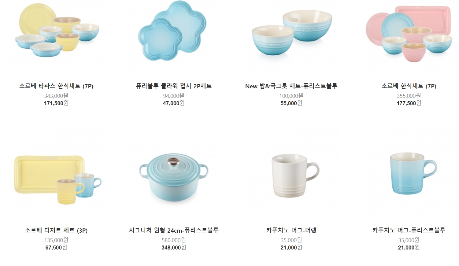 한여름에 잘 어울릴 것 같은 썸머블루 아이템도 이번 르크루제 세일 품목에 포함되었습니다. 파스텔 톤의 다양한 주방용품들은 여러분의 주방을 한결 더 빛나게 해 줄 것입니다.