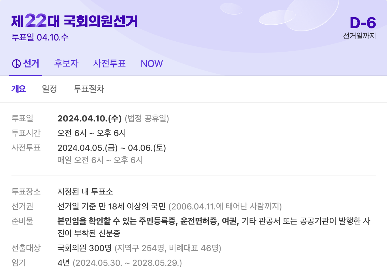 이번 4월 10일에 진행되는 제22대 국회의원 선거는 지역구 의원 254명과 비례대표 46명을 포함하여 총 300명의 국회의원을 뽑는 선거입니다.