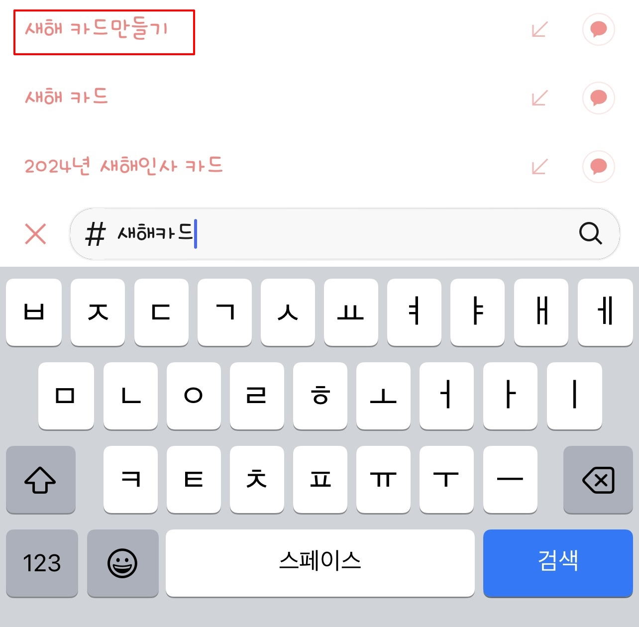 2. 입력란의 # 버튼을 누르고 새해 카드라고 검색합니다.