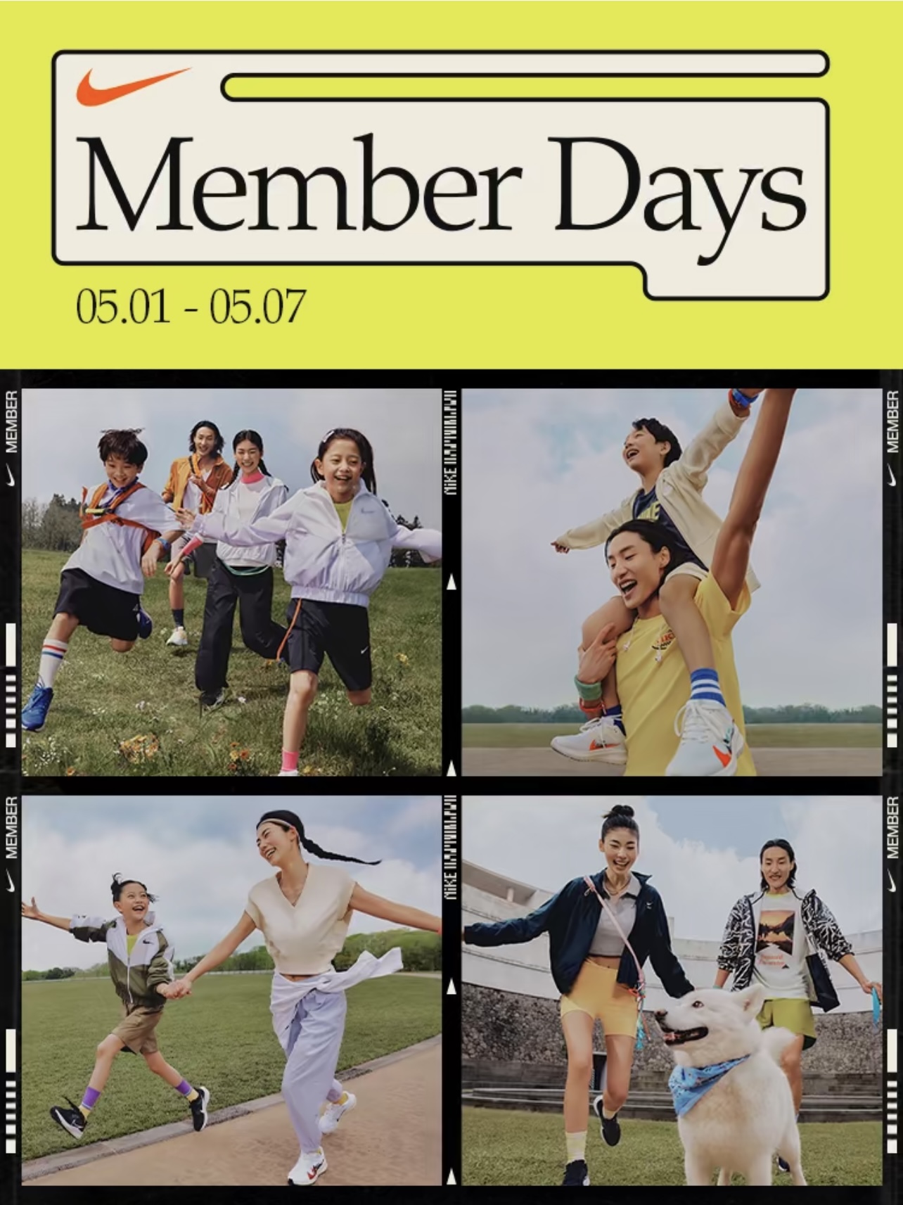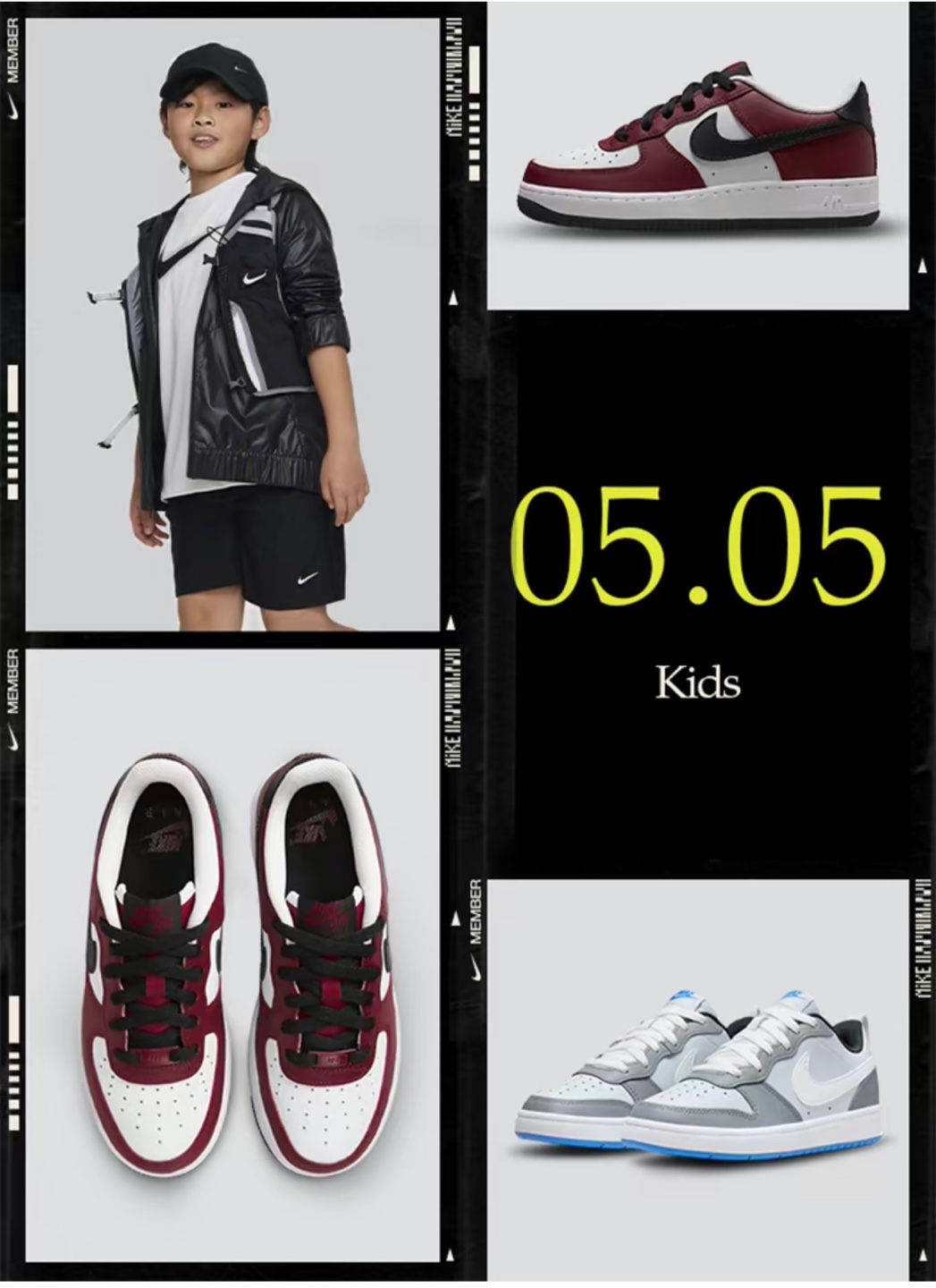 5월 4일부터 5월 5일까지 다음 조건 중 한 가지를 충족한 나이키 멤버는 키즈제품 추가 할인을 받을 수 있습니다.