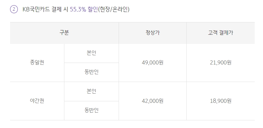 국민카드 실물로 결제 시에는 KB Pay로 결제하는 것보다 다소 비싼 21,900원에 서울랜드 종일권을 구매할 수 있습니다.