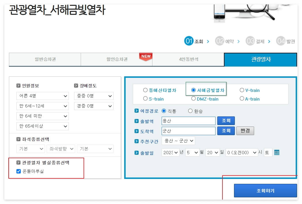 서해 금빛 열차는 수~일까지만 운행됩니다. 예약이 오픈되는 시간은 열차 출발 1개월 전 7시부터이므로, 그 시간에 맞춰서 예약 하셔야 합니다. 온돌마루 예약은 보통 몇 분만에 매진되므로, 결제에 필요한 것들을 미리 준비해두셔야 합니다.