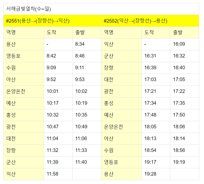 서해금빛열차가 용산에서 출발해서 익산까지 도착하는데 걸리는 총 시간은 3시간 24분입니다. 중간에 원하는 지점에서 내려서 관광을 마치고 당일에 다시 금빛열차를 탈 수도 있습니다. 하행선의 온돌마루실은 전석 매진인데 비하여, 상행선의 온돌마루실은 상대적으로 여유가 있으니(평일 기준), 내려가실 때는 일반 KTX를 타고 가셨다가 올라오는 열차를 온돌마루 실로 예매하셔도 좋을 것 같습니다.
