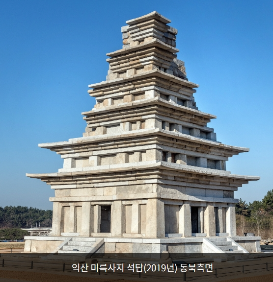 익산 하면 미륵사지 석탑이 제일 먼저 떠오릅니다. 우리나라 국보 11호인 익산 미륵사지 석탑은 백제 무왕 때 축조된 것으로 알려져 있습니다. 우리나라에서 제일 큰 석탑이며, 원래는 9층까지 있었다고 전해지지만, 현재는 6층 밖에 남아있지 않습니다. 익산 미륵사지 석탑은 고대의 목탑에서 석탑으로 변화되는 과정을 충실하게 보여주는 건축물로, 역사적 가치가 매우 높아 우리나라 불탑건축 연구에서 매우 중요한 문화재입니다.