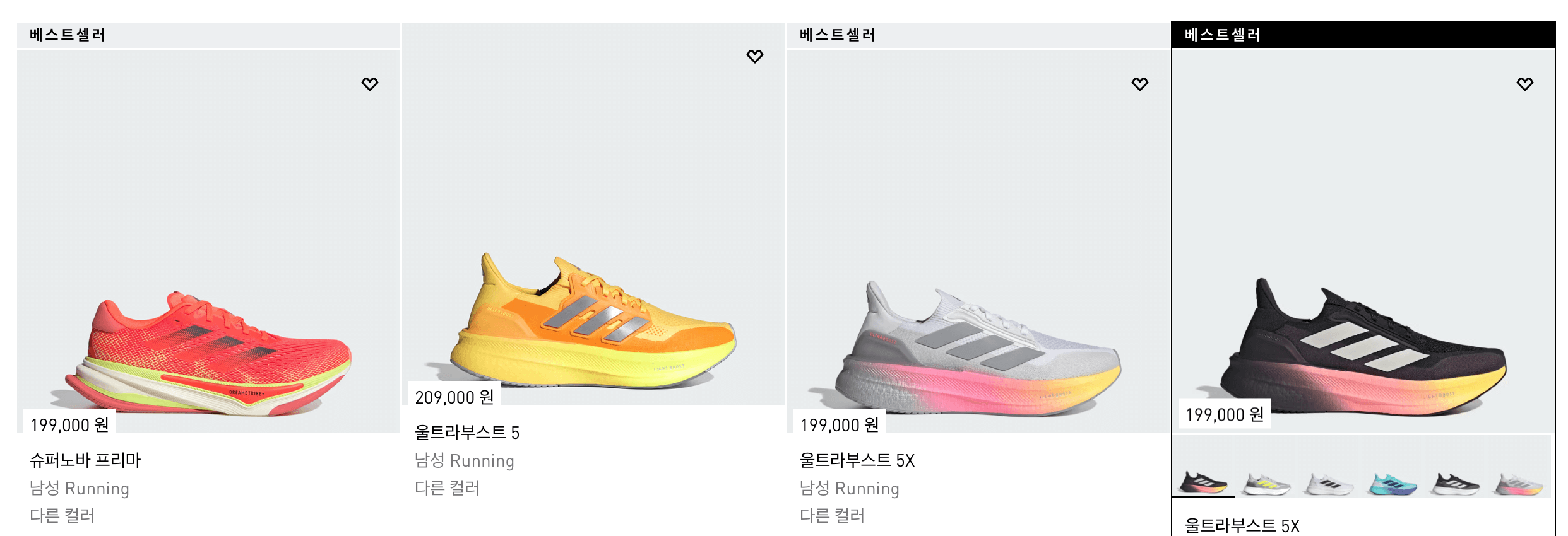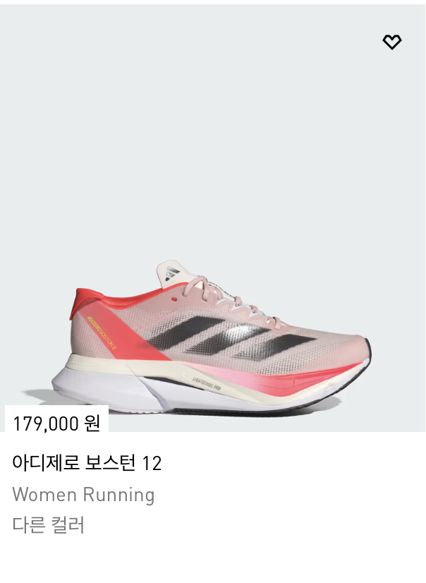 이번 세일에서는 20만 원이 훌쩍 넘는 상위버전의 인기 러닝화 제품들은 제외가 되지만, 아디제로 보스턴 12나 울트라 부스트 제품은 세일에 들어가기 때문에 러닝화를 사시고자 하는 분들에게는 좋은 기회가 될 것입니다.