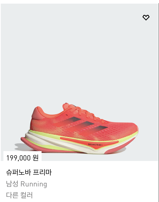 슈퍼노바 프리마는 산뜻한 색상이 매력적인 신발입니다. 미드솔 굽의 높이는 7mm 이며, 중량은 242g으로 보통의 무게입니다. 공기가 잘 통하는 메쉬가피의 영향으로 여름에도 쾌적하게 러닝을 가능하게 합니다.