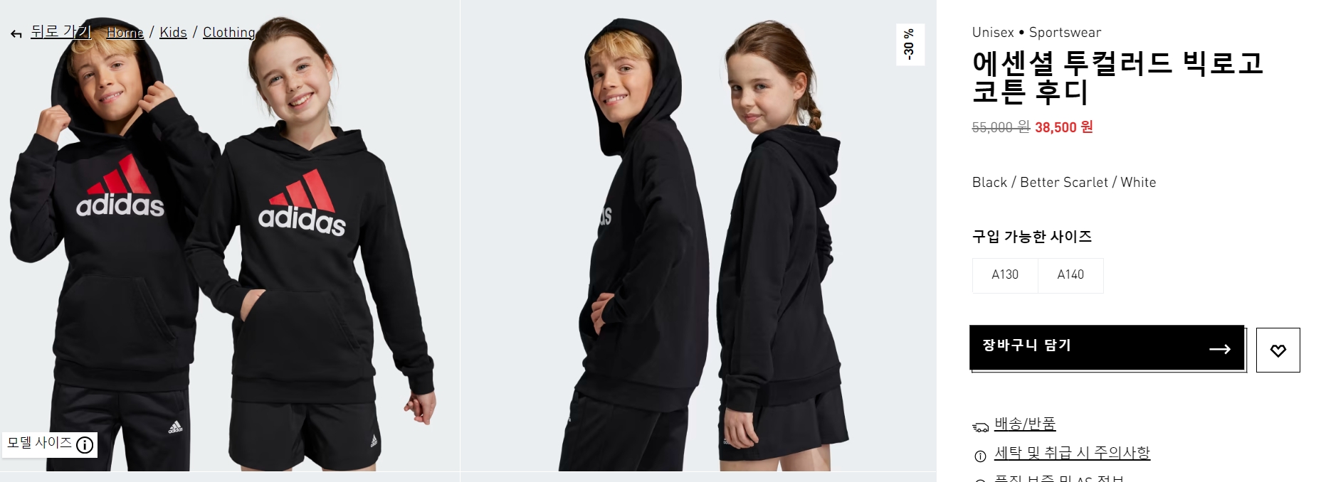 초등 고학년을 겨냥한 느낌있는 빅로고 코튼 후디도 이번 아디다스 여름세일에서 할인 중입니다. 가을을 대비하여 미리 구매해 두시는 것도 좋을 것으로 생각됩니다.