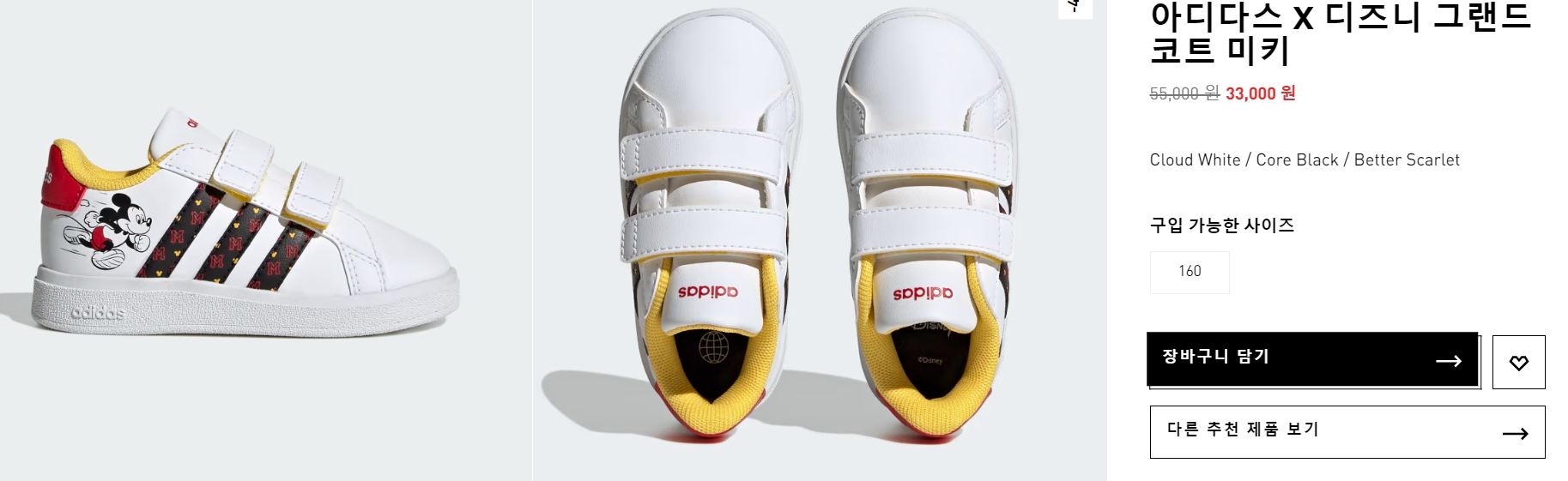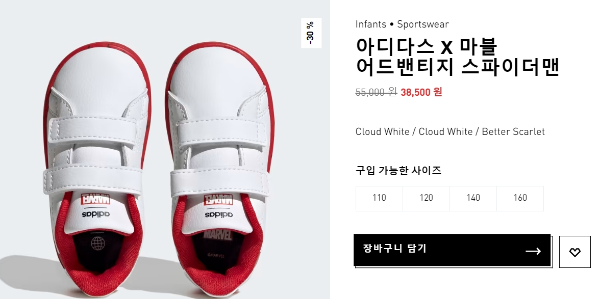 아장아장 걷는 3~4세 어린이들에게 어울릴 것 같은 귀여운 마블 운동화와 미키 운동화가 세일 중입니다. 구매할 수 있는 사이즈가 한정되어 있으니, 어서 서두르셔야겠습니다.