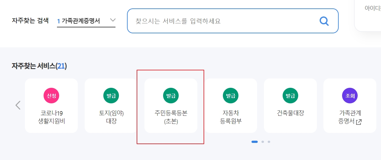 정부 24 홈페이지에서 자주 찾는 서비스- 주민등록등본(초본) 클릭 -발급 클릭- 회원 또는 비회원으로 발급 신청 (주민번호 뒷자리까지)