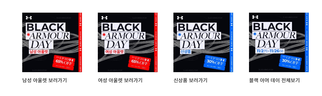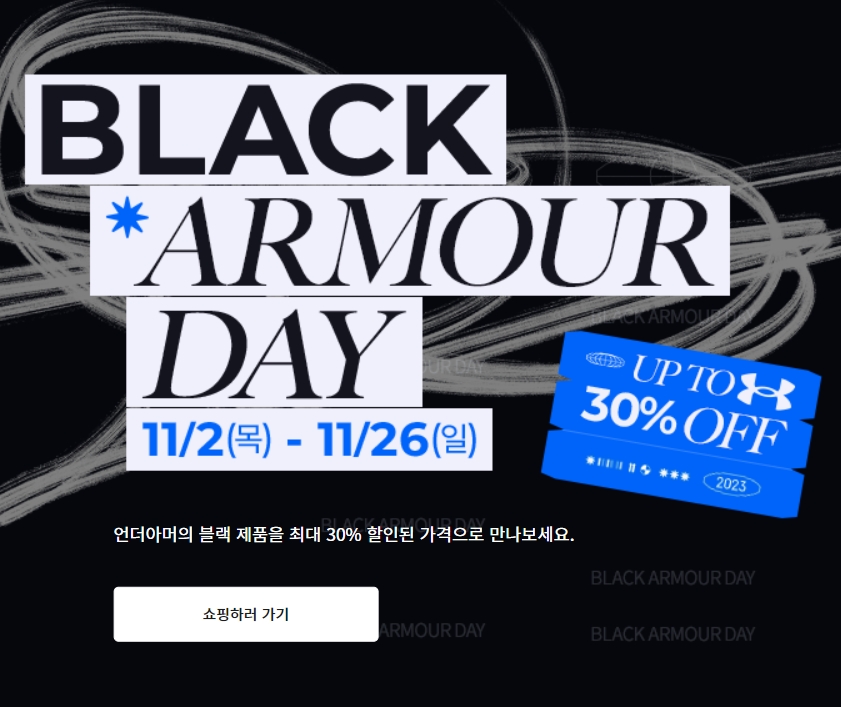 '블랙' 컬러 최대 65% OFF [블랙 아머데이] 11/2~11/26까지 | 언더아머 코리아
