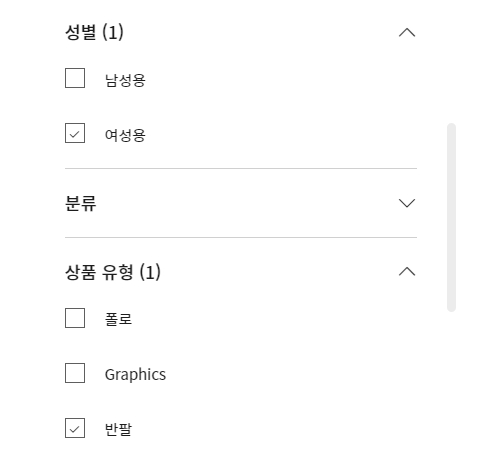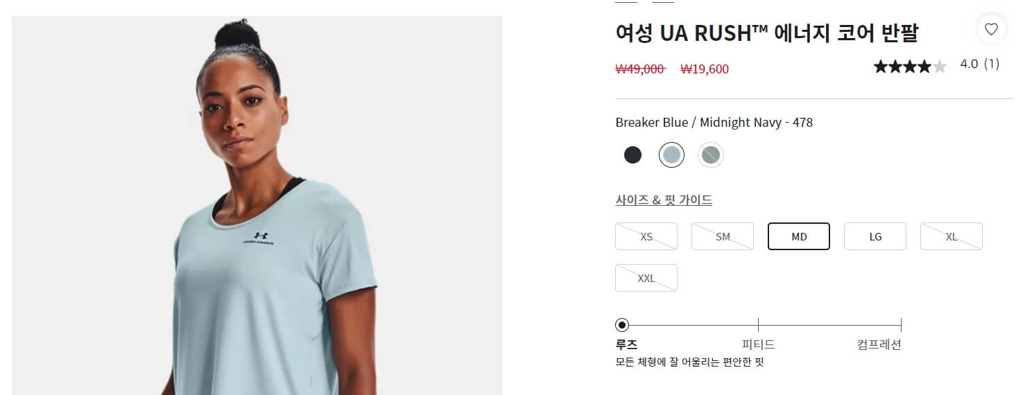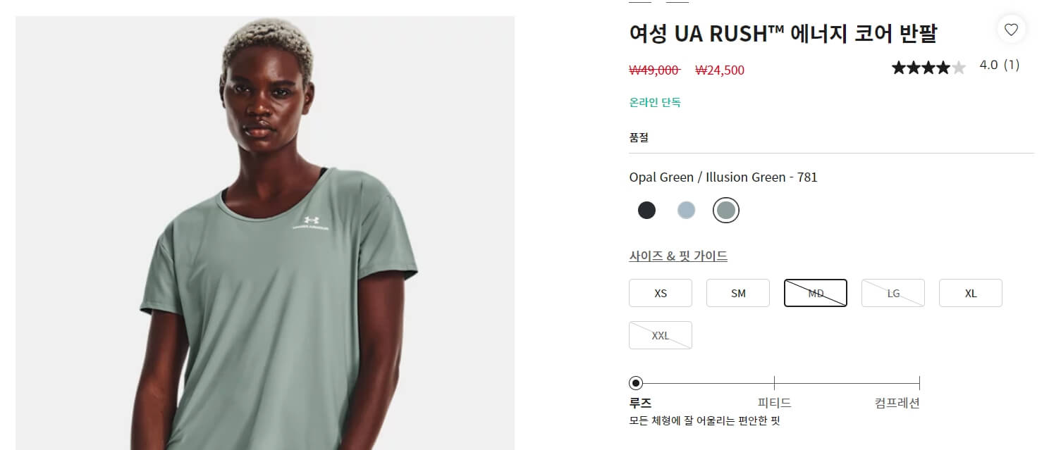 언더아머 사이트의 장점 중 하나는 제품을 쉽게 찾을 수 있게 분류를 세분화해 놓았다는 것입니다. 저 같은 경우에는 여성 반팔 셔츠가 필요했는데, 필터를 클릭하니 손쉽게 제품을 찾을 수 있었습니다.