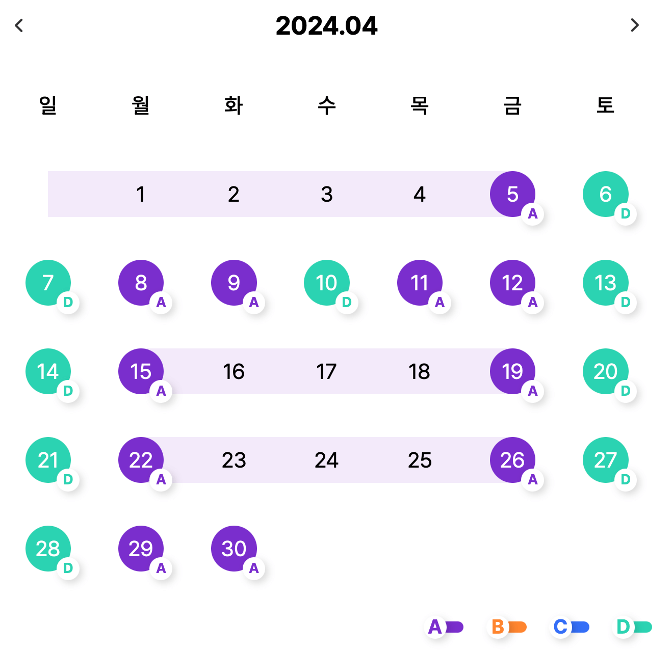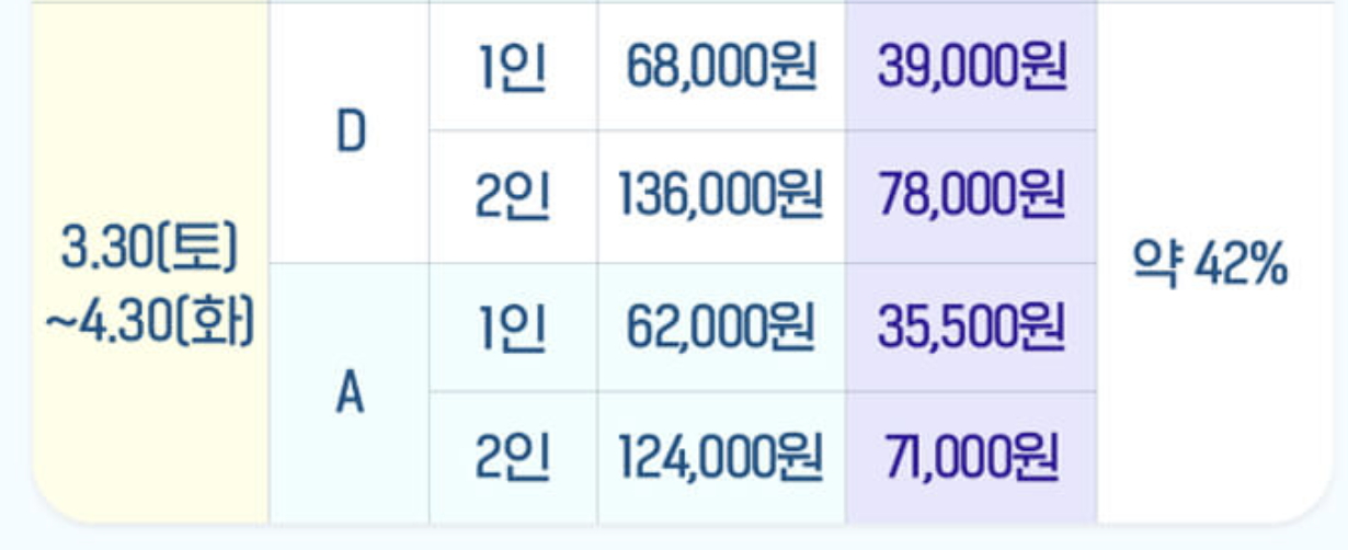 4~5월인 경우 시즌권은 A와 D가격을 적용받습니다. 평일에는 A, 주말과 공휴일에는 D라고 생각하시면 될 것 같습니다.