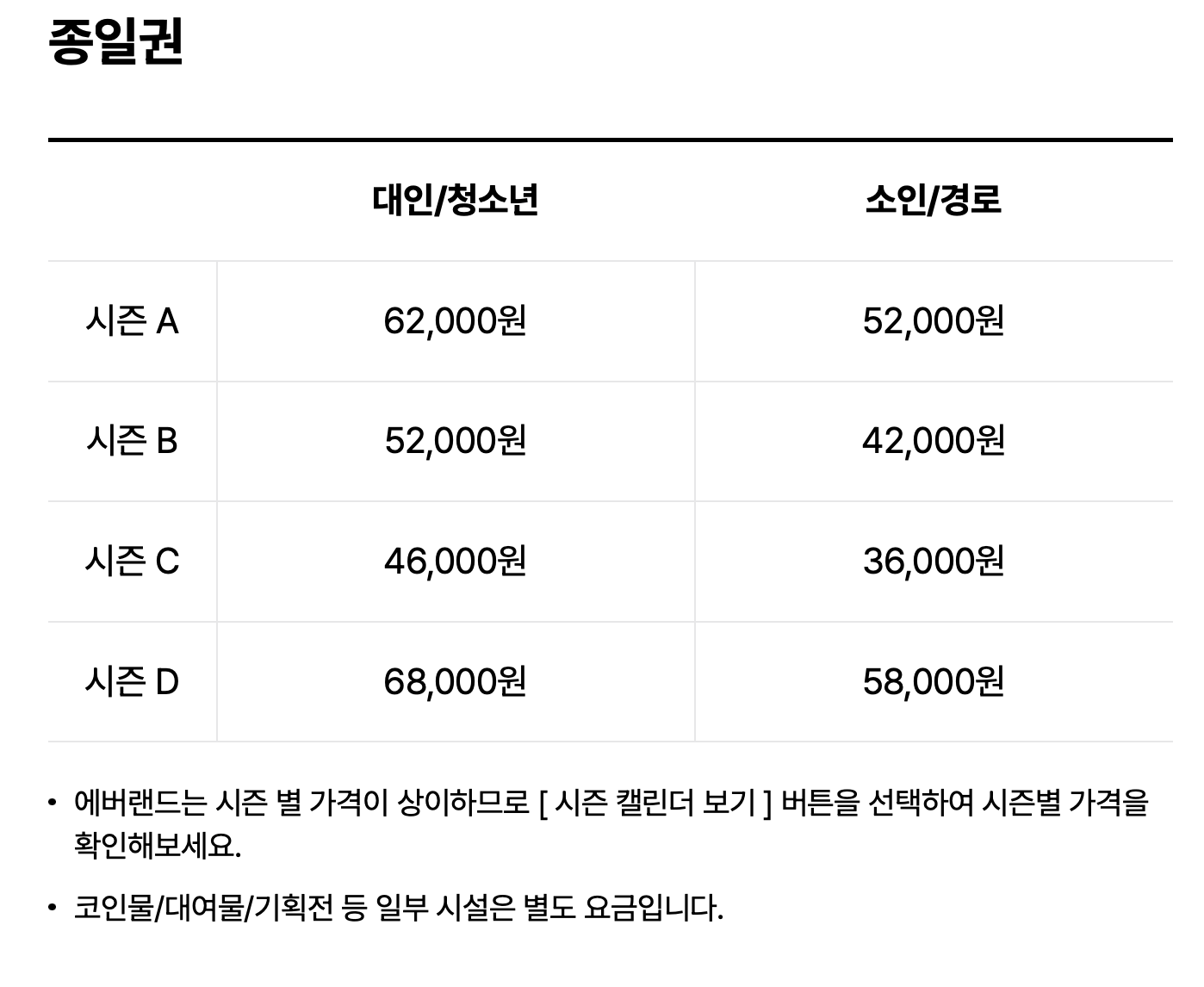 에버랜드 시즌 자유이용권 가격(4~5월)
