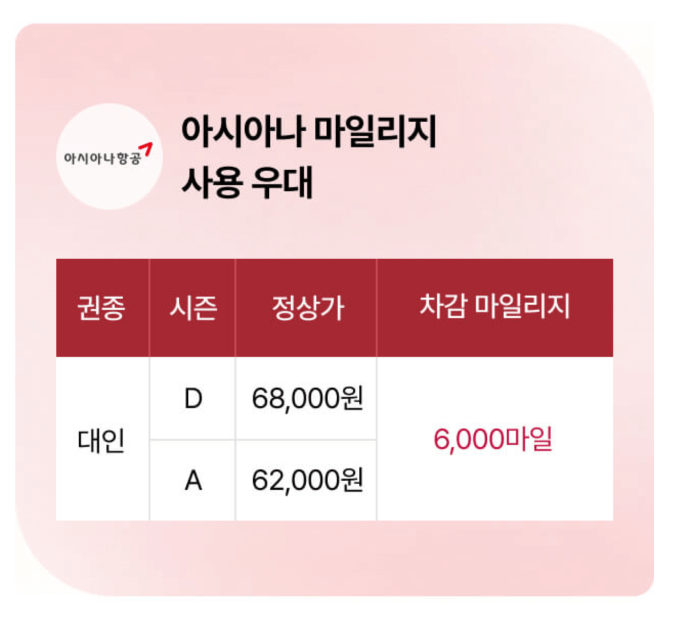 아시아나 마일리지로 에버랜드 입장이 가능합니다. 시즌과 관계없이 차감 마일리지는 6천 마일리지입니다. 이때 가족합산 마일리지 사용은 불가능하며, 본인 마일리지로만 예약이 가능합니다.