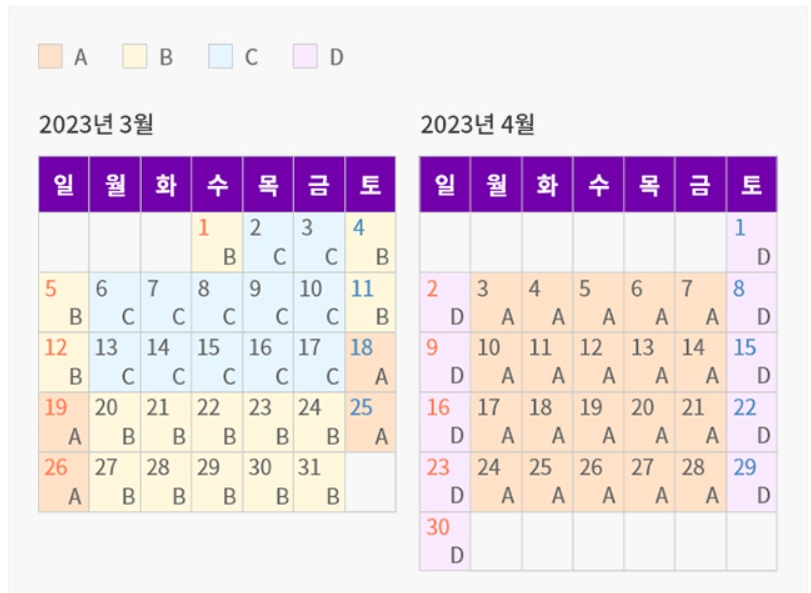 에버랜드는 A~D까지의 시기를 나누어서 가격 책정을 하고 있습니다. 그래서 이용요금 확인을 하기 전에 시즌을 먼저 확인해 보는 게 중요합니다.