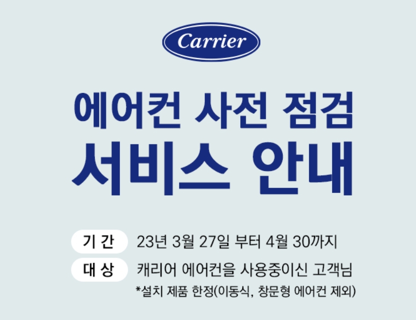 삼성전자, LG전자, 캐리어, 위니아 에어컨을 가지고 계신 분들에게 무료로 진행되는 사전점검 소식을 전합니다. 업체마다 사전점검 기간이 상이하니 확인해 보시고 신청하시기 바랍니다.