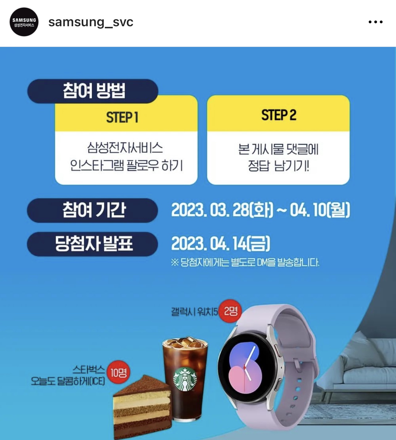 Instagram의 삼성전자서비스님 : "팔로우하고 퀴즈 맞히면 갤럭시 워치5가 내 손에⌚ ──────