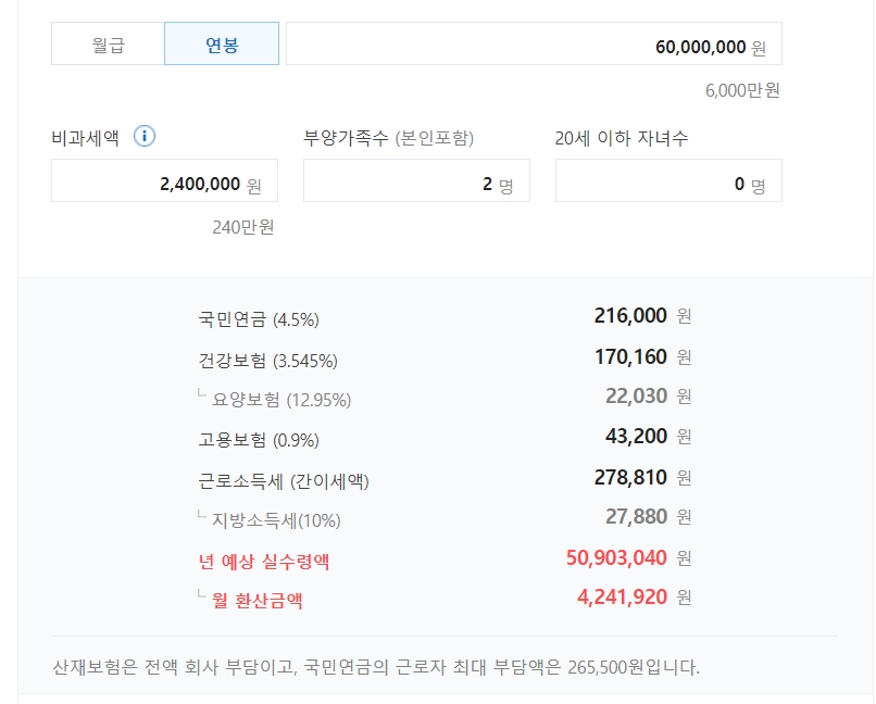 - 연봉 3000 4000 5000 6000 실수령액(월급)