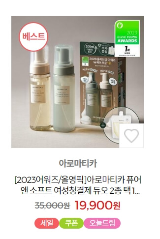 아비브의 스테디 셀러인 어성초 스폿패드 80매 제품도 23,000원으로 할인 중입니다. 자극적인 환경에 지친 피부를 쉬게 해주는 어성초 패드 이번 올영 세일에서 구매하시는 것을 추천드립니다. 또한 여자라면 필수품인 여성청결제 제품인 아로마티카 제품도 15,000원가량 세일 중입니다. 비누로만 닦지 말고 이제는 여성청결제를 사용해 보세요. 소중한 곳이니만큼 센스 있게 관리가 필요합니다.