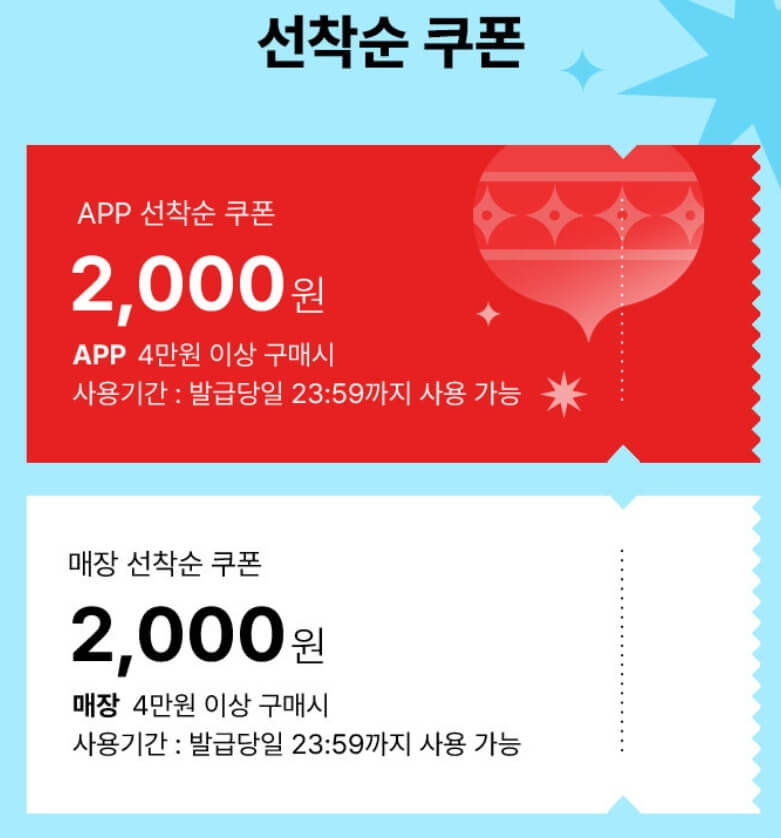 3. 다운 받은 쿠폰을 당일까지 유효하므로 온라인이나 매장에서 사용합니다.