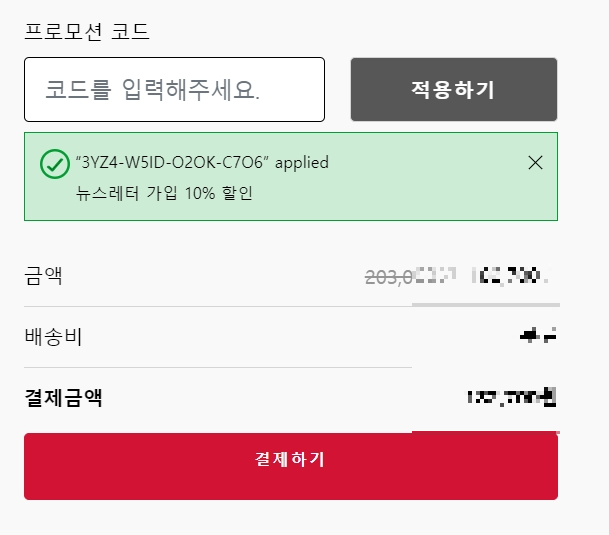 구독 신청하시면 이메일로 온라인 전용 쿠폰번호가 도착합니다. 구매할 때 프로모션 코드를 입력하는 부분에서 복사하여 붙여 넣기를 하시면 10% 할인 적용이 완료됩니다.