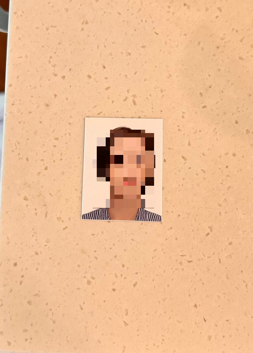 1. 증명 사진을 놓고 최대한 90도 위에서 사진을 찍습니다. 배경은 밝은 곳이 좋습니다. 이때 가까이 찍지 말고 좀 멀리서 찍어주세요.