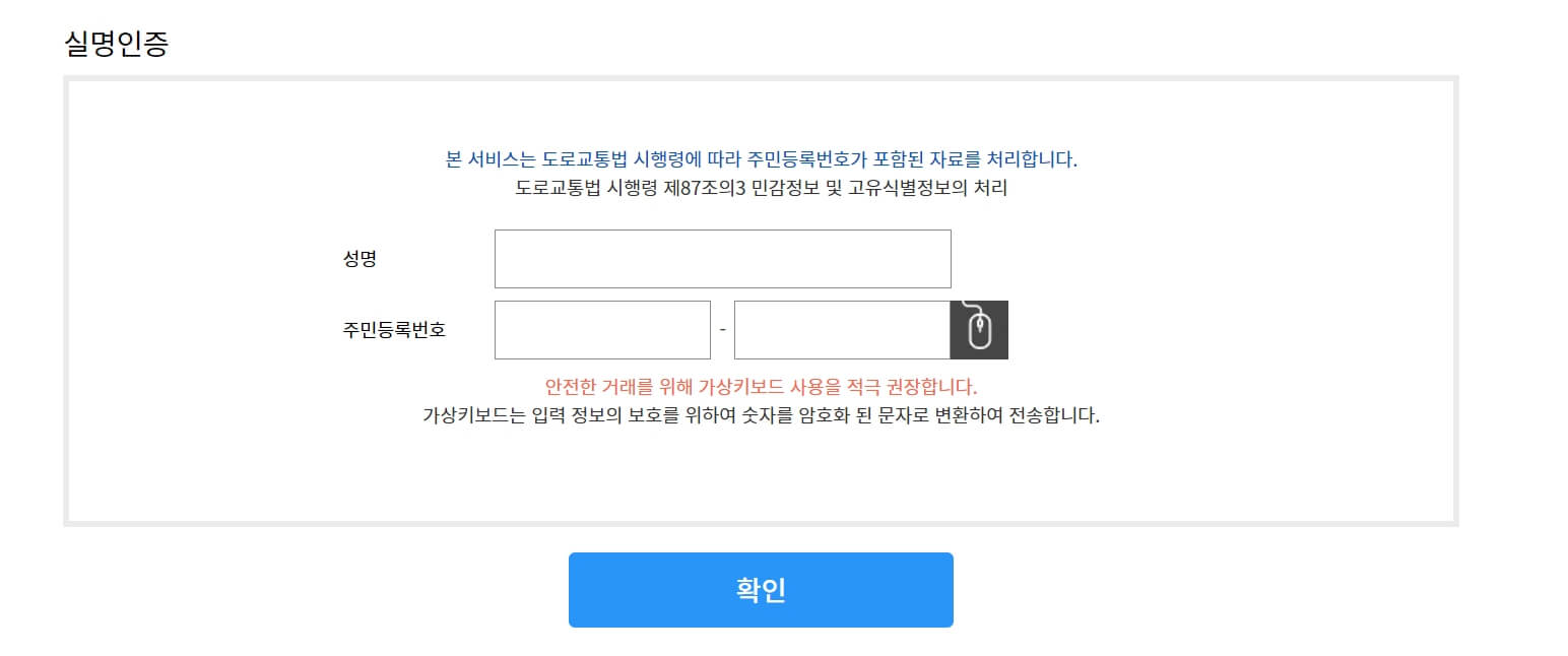 버튼을 누르시면 바로 실명인증 화면으로 넘어갑니다. 제가 어제 갱신 기간 중에 조회했을 때에는 가능했는데, 지금은 신청완료인 상태라 화면이 더 이상 조회가 되지 않습니다. 인터넷으로 신청 가능하신 조건은 다음과 같습니다.