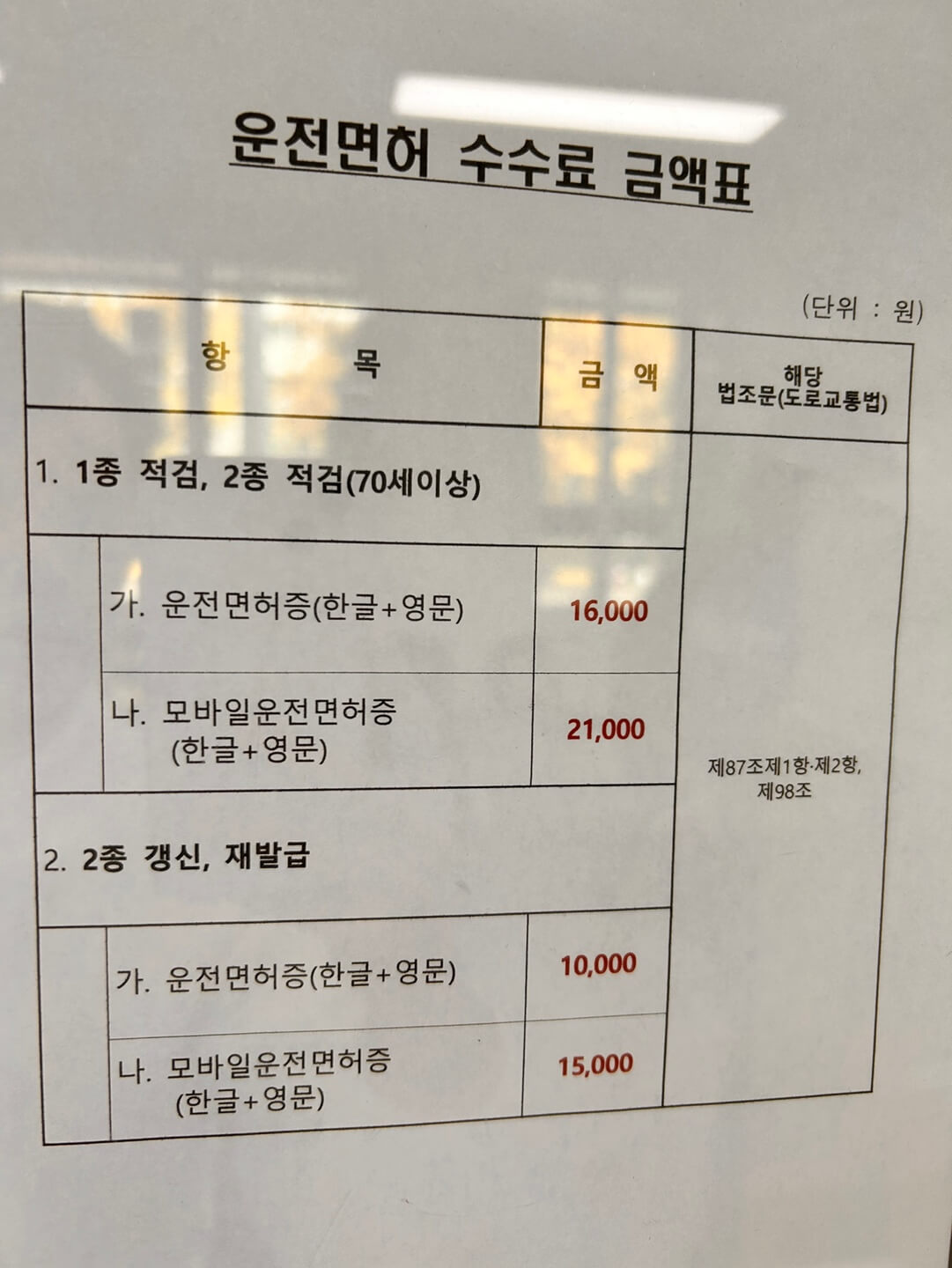 - 오프라인 운전면허증 갱신방법 준비물 수수료