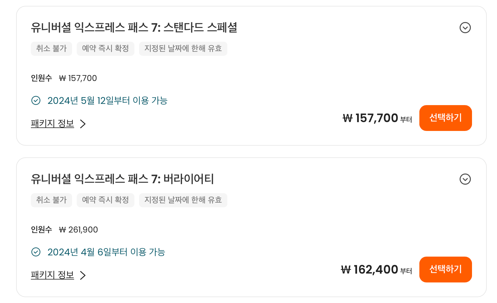 익스프레스 패스의 오픈일 은 두 달 전입니다. 정말 구매하고 싶은 티켓이 있다면 두 달 전에 미리 구매하세요!. 주의하셔야할 점은 취소 환불이 불가능하기 때문에 신중하게 구매해야 한다는 사실입니다.