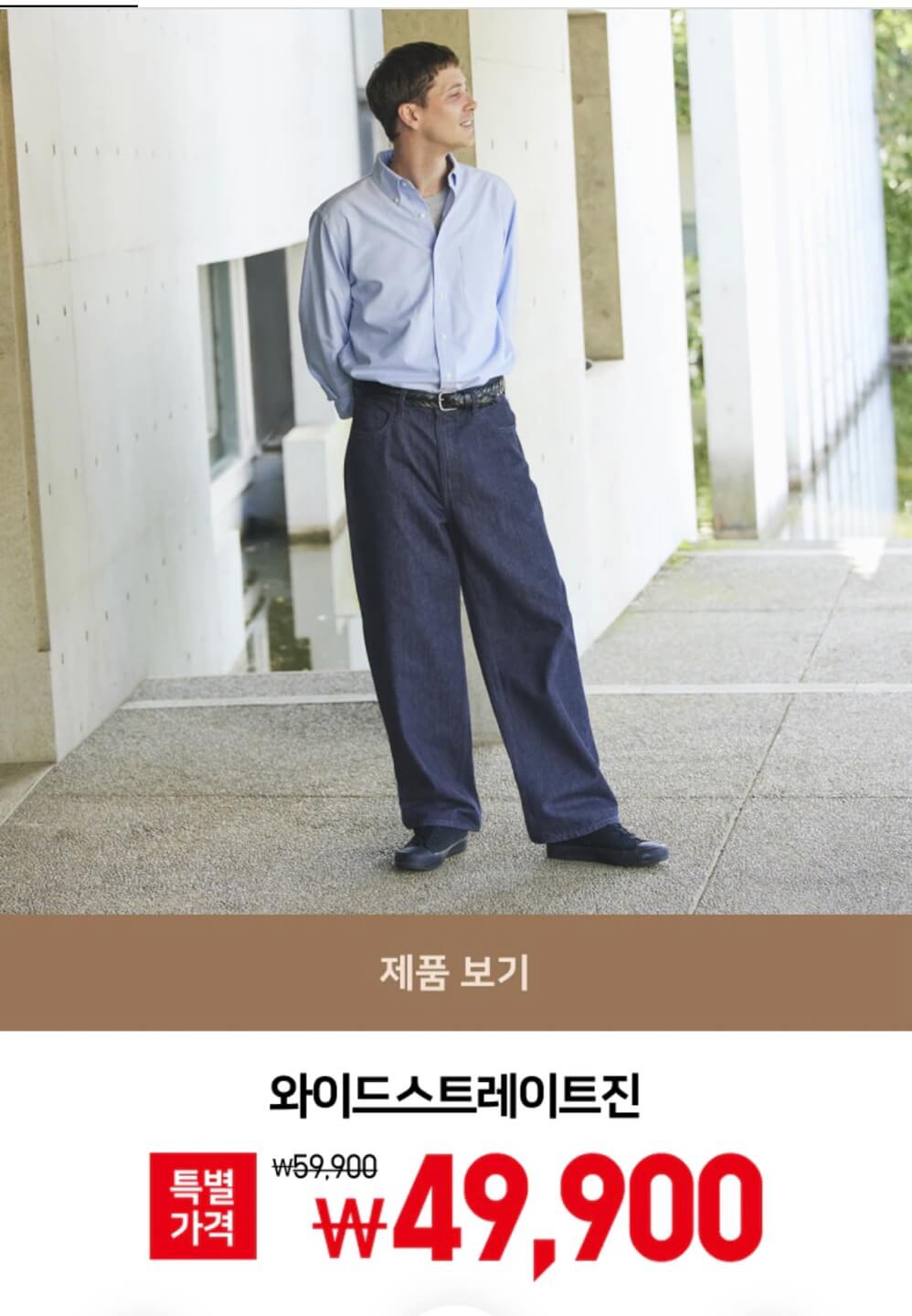 가을은 셔츠의 계절이기도 합니다. 유니클로의 대표적인 상품인 옥스퍼드 셔츠가 추석기간 동안 만원이 할인된 29,900원입니다. 또한 과거 유행했던 펑퍼짐한 스타일의 와이드 팬츠도 만원 할인에 들어간 49,900원입니다.
