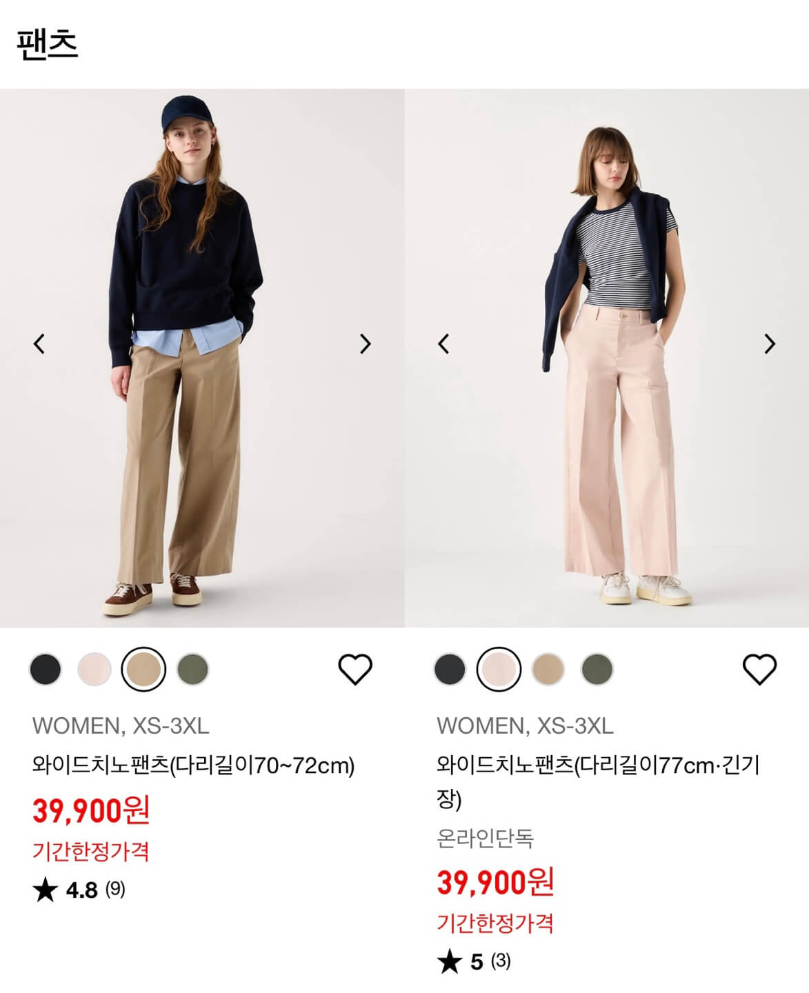 올 가을 유행은 뭐니뭐니해도 와이드 팬츠인 듯합니다. 이번 유니클로 세일을 통해 와이드치노 팬츠도 구매하시고 멋쟁이도 되어보세요!