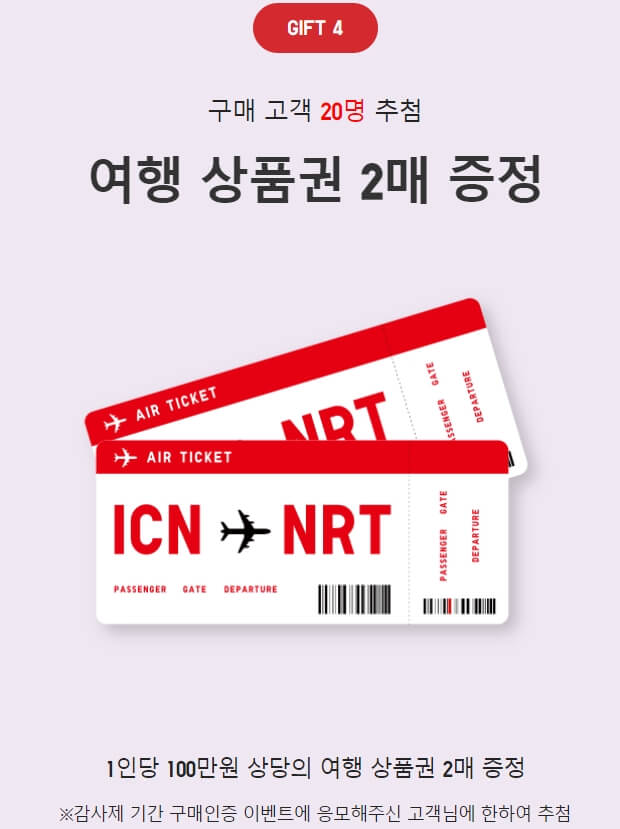저는 개인적으로 마지막 이벤트가 제일 끌리는데요. 구매 고객 20명을 추첨하여 일본여행 상품권 2매를 증정한다고 합니다. 자세한 이벤트 응모 방법은 추후에 공개될 예정이니 조금만 기다려주세요!