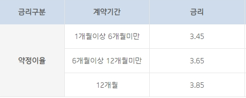 | 금리 | 최대 연 6.0% | 최대 연 3.95% | 최대 연 5.35% |