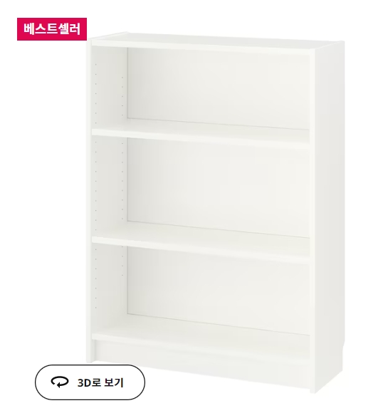 가격대비 견고하고, 조립도 쉬운 편에 속하는 빌리는 베스트 아이템 중 하나입니다. 종종 이케아 세일품목에도 포함되는 제품으로 세일 때 구매하시기를 추천드립니다. 블랙과 자작나무, 참나무, 화이트 색상 4가지로 되어 있으며, 색상에 따라 가격이 상이합니다.
