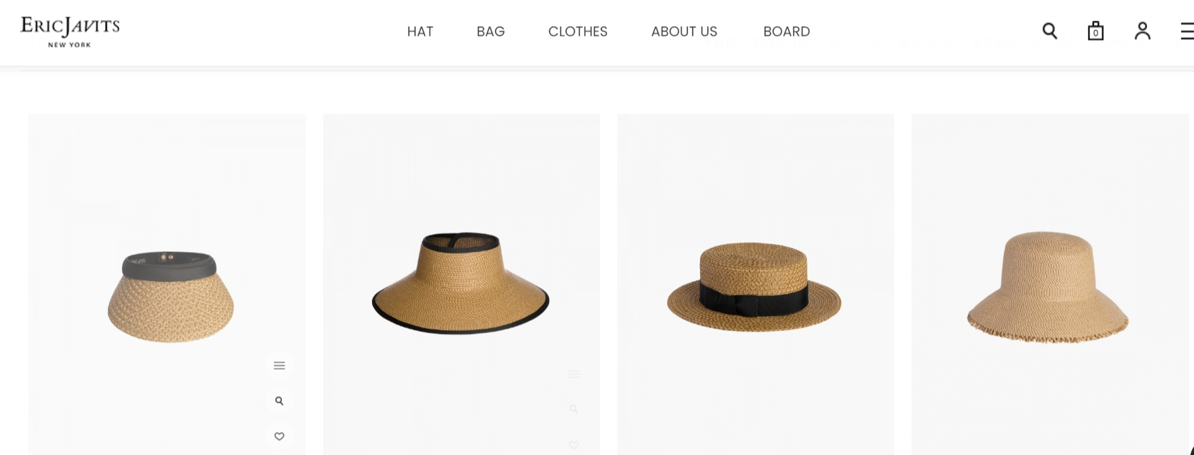 미국 뉴욕에서 온 에릭자비츠는 창업자의 이름을 딴 브랜드입니다. 모자 디자이너로 잘 알려진 그는, 1995년 스퀴시 모자를 개발합니다. 스퀴시 소재로 된 모자는 자외선을 보다 효율적으로 차단하면서, 복원이 뛰어나다는 장점을 가집니다. 현재, 오프라인 매장과 홈페이지에서 판매중입니다. 선바이저 제품은 상대적으로 헬렌 카민스키의 제품보다 약간 가격대가 높게 책정되어 있습니다.