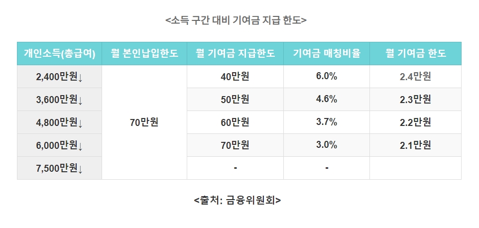 청년 도약계좌의 가입자는 개인소득 수준과 본인이 납입한 금액에 따라 정부 기여금을 지원받을 수 있습니다. 개인소득이 낮을수록 많은 지원이 이루어지도록 소득구간별로 차등을 둔 것이 특징입니다. 가입 신청시에는 개인소득과 가구소득 심사를 병행하는데, 가구원은 가입 당시 기준으로 확정됩니다. 1년에 한번 개인소득 유지심사를 실시하며, 예기치 못한 가구원 변동으로 인한 불이익을 방지하기 위해 가구소득 변동은 반영하지 않습니다.